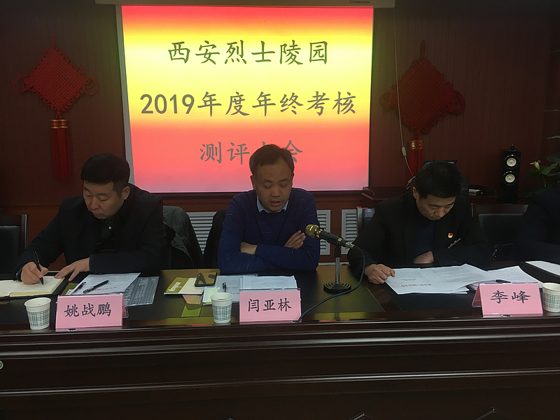 2020年1月16日下午,西安烈士陵园召开2019年度目标责任考核对标测评大会,局第三考核组对我单位2019年度目标任务完成情况进行全面考核。第三考核组带队领导闫亚林、组长姚战鹏、成员李宝锋、翟华栋、张嘉瑜出席会议。会议由陵园党支部书记李峰主持,全体在职职工31人参加会议。