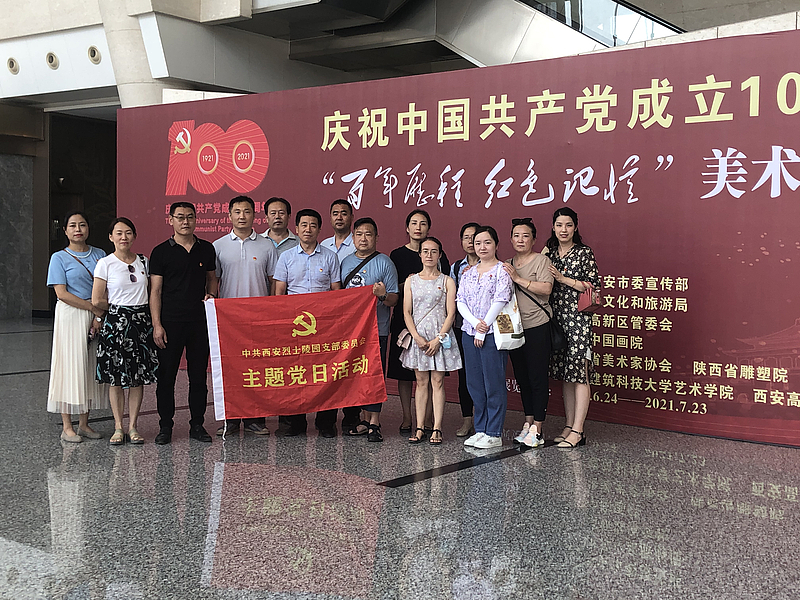 为隆重庆祝中国共产党成立100周年,深入贯彻落实中央《关于在全党开展党史学习教育的通知》精神,按照全市党史学习教育活动部署安排, 7月7日下午,西安烈士陵园党支部组织全体党员观看“百年历程红色记忆”美术作品展。