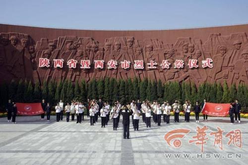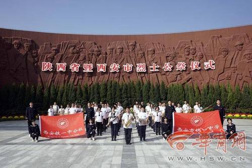 9月30日是我国烈士纪念日,为了缅怀英烈,传承英雄精神,向舍身为国的英雄们致敬,华商全媒体联合烈士陵园、西安铁一中开展了“我为烈士演奏一曲”活动。西安铁一中交响管乐团的同学们来到西安烈士陵园,为烈士敬献花篮,奏响追思乐章。