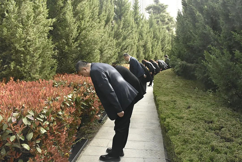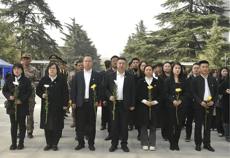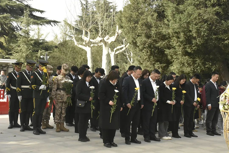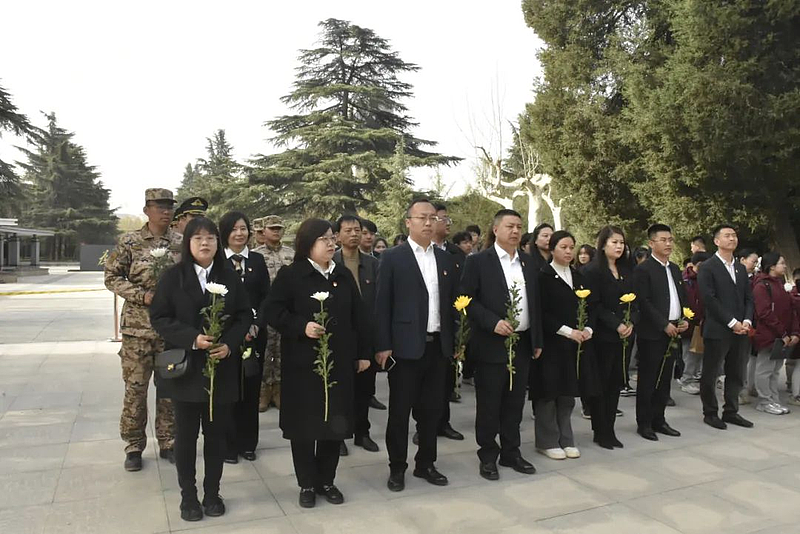 仪式结束后,大家怀着崇敬的心情,依次走向烈士墓碑,献上手中的鲜花。一朵朵鲜花,象征着对先烈们的无尽追思;一个个鞠躬,表达着对先烈们的崇高敬意。