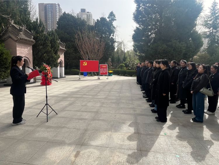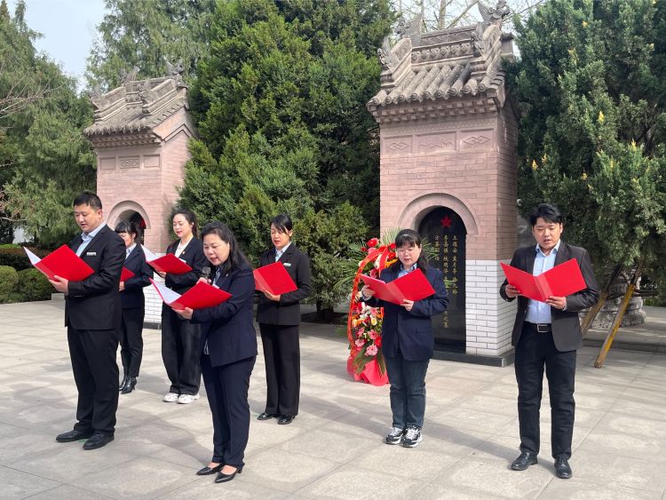 市退役军人事务局机关党委举行了清明祭英烈主题党日活动,重温入党誓词,西安烈士陵园讲解员成鑫宇讲授微党课,党团员干部前往烈士墓区擦拭烈士墓碑,向烈士敬献鲜花。
