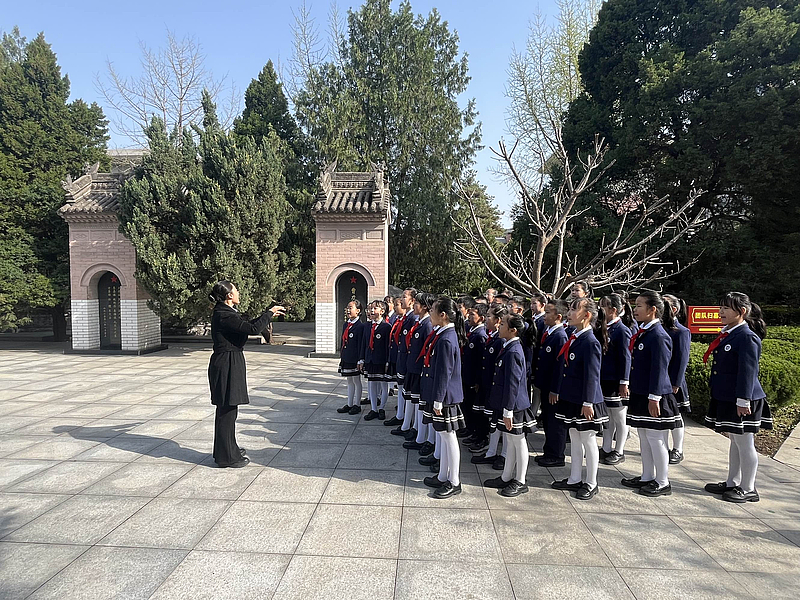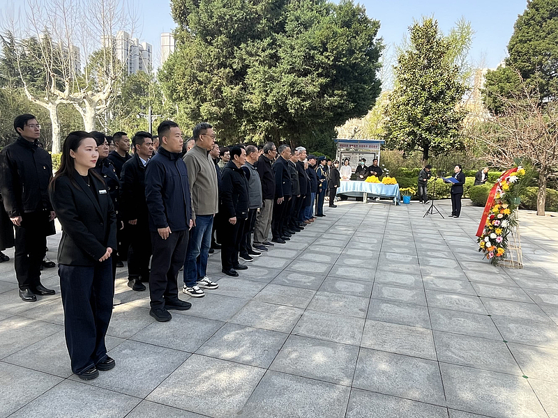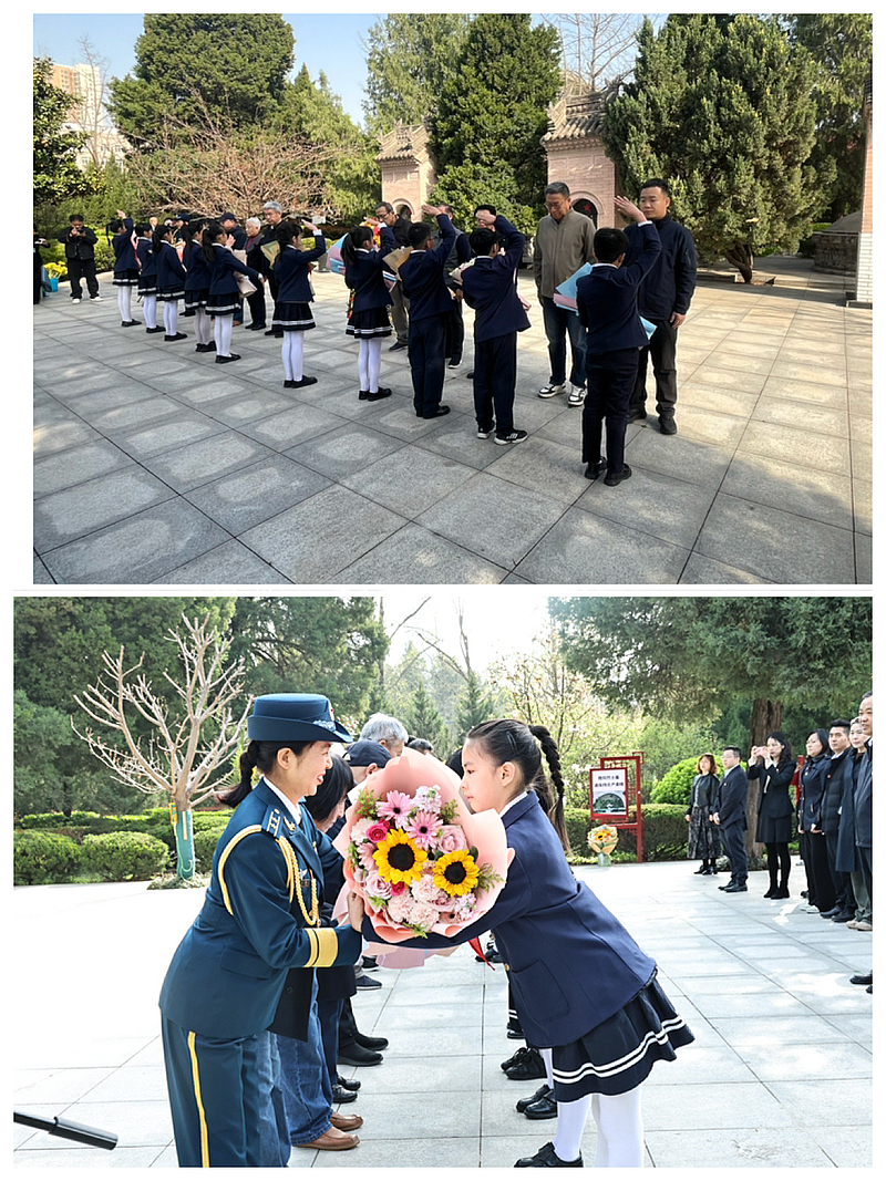 为深入学习贯彻党的二十大和二十届二中、三中、四中全会精神,传承红色基因、深刻理解英烈精神内涵,厚植爱国情怀,在全社会营造崇尚英烈、缅怀英烈、学习英烈、捍卫英烈、关爱烈属的浓厚氛围。由中共西安市委宣传部、中共西安市委党史研究室、西安市退役军人事务局主办,西安烈士陵园、西安市英烈褒扬促进会承办的“追寻·2026·清明祭英烈”烈士追思活动在西安烈士陵园墓区小广场隆重举行。参加活动的有市委宣传部、市委党史研究室、市退役军人事务局、西安烈士陵园、市英烈褒扬促进会相关领导,烈士亲属、市退役军人事务局机关党团员干部、明德门小学师生代表等150余人。
